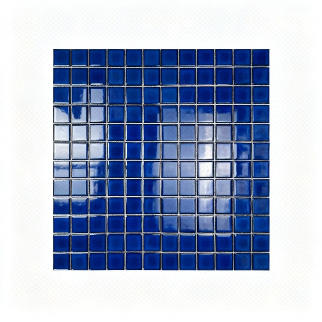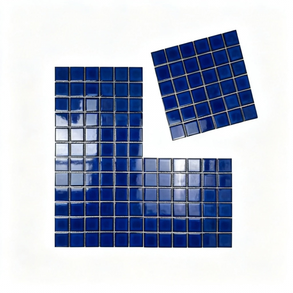 Widely preferred by architects, contractors, and interior designers across Dubai, Abu Dhabi, Sharjah, and the UAE, this navy blue porcelain mosaic tile offers the perfect balance of high-end aesthetics and exceptional durability. Its rich midnight-blue shade provides depth and contrast, while the glossy crystalline glaze reflects light beautifully, adding luminous highlights to bathrooms, kitchens, feature walls, spa areas, and hotel interiors.