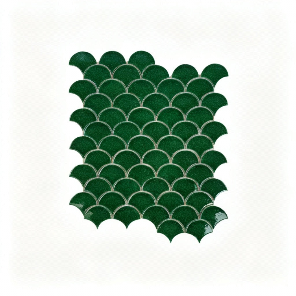 Favored by interior designers, architects, and homeowners across Dubai, Abu Dhabi, Sharjah, and the UAE, this leaf green fan-shaped porcelain mosaic brings depth, texture, and a lively touch of color to residential and commercial spaces alike. Its elegant fan design introduces visual movement, making it ideal for bathroom walls, kitchen backsplashes, spa interiors, boutique hotels, luxury retail spaces, and modern living areas.
